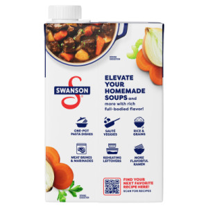 It's great as a stew or soup base, and it can be used instead of water to boost rich flavor in rice, pasta and veggies. Swanson Beef Broth is a must-have for your cooking, bringing richer, elevated homemade flavor to beef-centered recipes such as pot roast, brisket and more.