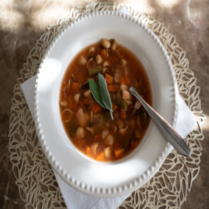 This classic Italian soup is loaded with carrots, potatoes, celery, tomatoes, kidney beans, green beans and zucchini with shell-shaped pasta and spices.