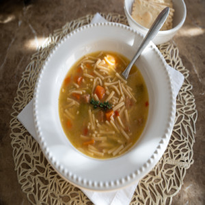 Tender chicken, egg noodles, carrots and celery in golden chicken broth seasoned with sauterne wine and garlic.