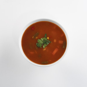 A hearty, low sodium vegetable soup made with potatoes, carrots, toasted barley, peas, green beans and red peppers.