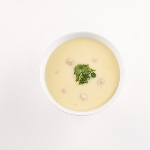 A smooth, delicate blend of tender seasoned chicken in a creamy chicken stock.