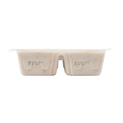 THIS PRODUCT HAS NOT BEEN FULLY COOKED BEFORE FREEZING. CAREFULLY FOLLOW THE RECOMMENDED COOKING TIMES AND TEMPERATURES TO ENSURE COMPLETE COOKING. This product may be tempered up to 5 days in a 40˚ F. refrigerator prior to cooking. Peel back plastic film starting from one edge. Keep film to view cooking directions. 1. If soup is frozen, run knife around soup blocks in trays to loosen. Empty the 2 trays of soup into large saucepot. 2. Fill both trays with water (64 fl. oz. in total). Add to saucepot. 3. Heat to a boil over medium-high heat, stirring frequently. Reduce heat to low. Boil gently, stirring frequently to break up frozen pieces, until temperature reaches 190˚ F. 4. Transfer to holding kettle or steam table. Promptly refrigerate unused cooked soup in separate container MIX WITH WATER KEEP FROZEN UNTIL READY TO USE