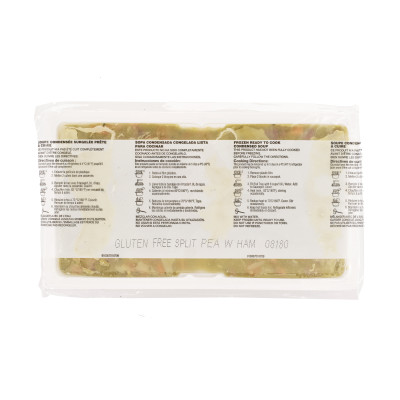 A bowl of our Split Pea with Ham Soup, served with fresh-baked bread, is hearty enough to serve on its own, or you can premium-ize it with whatever’s fresh in your kitchen. This frozen soup has a storage life of 638 days in your freezer and yields approximately 384 fluid ounces of hearty soup. At Campbell's Foodservice, we make carefully crafted soups, so you can be proud to use and serve them all year long. Made with carefully selected ingredients with options rich in protein, fiber, or vitamins, our soups are full of what guests love, not what they don't.