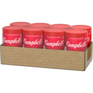 - Campbell's® Sipping Soup: Eight (8) 10.75 oz microwavable cups of Campbell's® Sipping Soup, Chicken & Mini Round Noodle Soup