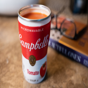 - Microwavable Soup: Just remove the lid, peel off the tab, microwave this tomato soup, let sit, replace the cap and enjoy