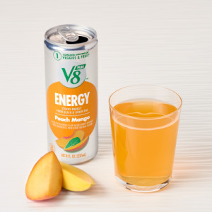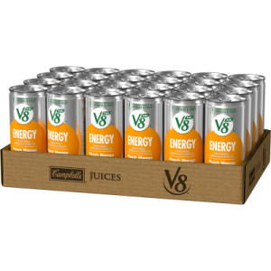 - Twenty-four (24) 8 fl oz cans of V8 +Energy® Peach Mango Juice Energy Drink