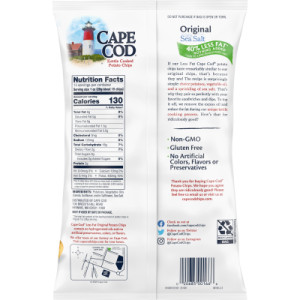 Cape Cod Less Fat Original Kettle Cooked Chips start with the pure taste of potato. Kettle cooked in small batches, you’ll get the same great taste and wonderful Cape Cod crunch but with 40% less fat than the leading brand of potato chips, because an extra spin in the kettle leaves less oil.