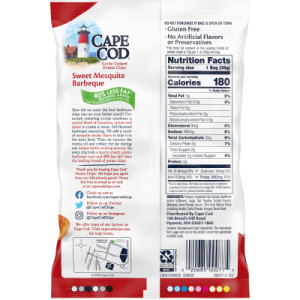 Our mouth watering recipe combines a special blend of tomatoes, onions and spices to create a sweet, full-flavored barbeque seasoning. We add a touch of mesquite smoke flavor to take it to the next level. Then we remove the excess oil to reduce the fat during our unique kettle cooking process. So every chip holds a hearty crunch, savory barbeque taste and 40% less fat than the leading brand of potato chips. Cape Cod Potato Chips are known for their quality taste, hearty crunch and distinctly remarkable flavors. These delicious chips are made with premium, carefully selected ingredients beginning with oil, salt and potatoes. Available in many traditional and unique varieties, Cape Cod Potato Chips maintain the tradition of using high quality ingredients in all its snacks.