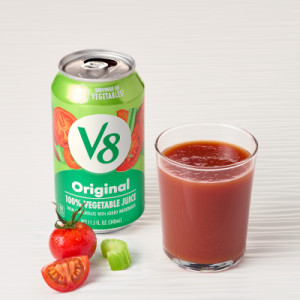 Savor the plant based goodness of V8® Original 100% Vegetable Juice. A satisfying alternative to other juices, the original V8® juice is made with concentrated tomato juice along with the juices of seven other vegetables. The result is a 100% juice with a distinctly rich, savory flavor. Delicious and nutritious, V8® vegetable juice is an easy way to help get your daily recommended veggies. Each 11.5 fl oz can contains 2.5 servings of vegetables and is an excellent source of Vitamins A and C. Our veggie juice is also gluten free and non GMO with no sugar added* and no artificial colors. Enjoy V8® on its own straight from the can, over ice, or seasoned with pepper and adorned with your favorite garnishes. Its great as a breakfast drink, afternoon snack, or post workout drink. With our single-serve cans and bottles, taking the nutrition of V8® vegetable drink on the go has never been easier. (*Not a low calorie food; see nutrition panel for sugar and calorie content)