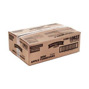 Enjoy delicious Pepperidge Farm® Turnovers made with layers of flaky puff pastry and real apple filling. Delicious on their own or topped with ice cream or dessert sauce. Box includes 144 frozen apple turnovers. Made with layers of flaky puff pastry and real fruit filling. Please bake in a conventional oven.
