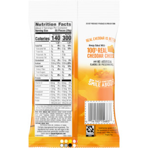 MADE WITH SMILES AND ENRICHED WHEAT FLOUR (FLOUR, NIACIN, REDUCED IRON, THIAMINE MONONITRATE, RIBOFLAVIN, FOLIC ACID), CHEDDAR CHEESE ([CULTURED MILK, SALT, ENZYMES], ANNATTO), VEGETABLE OILS (CANOLA, SUNFLOWER AND/OR SOYBEAN), SALT, CONTAINS 2% OR LESS OF: YEAST, SUGAR, AUTOLYZED YEAST EXTRACT, PAPRIKA, SPICES, CELERY, ONION POWDER, MONOCALCIUM PHOSPHATE, BAKING SODA. CONTAINS: WHEAT, MILK.