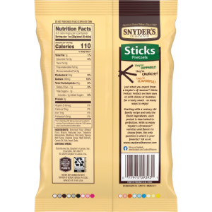 Our classic Pretzel Sticks in a form that the whole family can enjoy! What do you do with your Pretzel Sticks? You can dip them, stack them, but whatever you do, enjoy them! We bake to the highest quality following our nearly 100 year old recipes. Our Pretzel Sticks offer a classic taste and a shape that is sure to be a perfect accompaniment to your favorite mustard or cheese dip. Plus, since they're made in a facility that does not process peanuts, they're great for kids to bring to school. Snyder's of Hanover has been America's Pretzel Bakery since 1909 and our pretzels give you that delicious crunch for the perfect snack! Non-GMO Project Verified, Snyder's of Hanover pretzels are made from wholesome ingredients, kneaded, and oven-baked to seal in all the flavor. Snyder's of Hanover pretzels have been shared across tables, across generations and across the country, making us America's favorite pretzel brand.