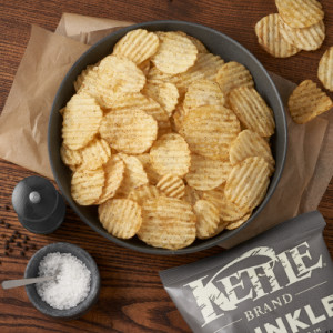 Kettle Brand Krinkle Cut Salt & Ground Pepper kettle chips are sliced thicker than our classic chips for extra crunch. Their deep ridges hold up to extreme seasoning with a kiss of zingy salt and the kick of ground pepper.