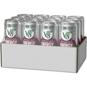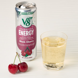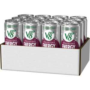 - Twelve (12) 11.5 fl oz cans of V8 +Energy® Sparkling Black Cherry Juice Energy Drink