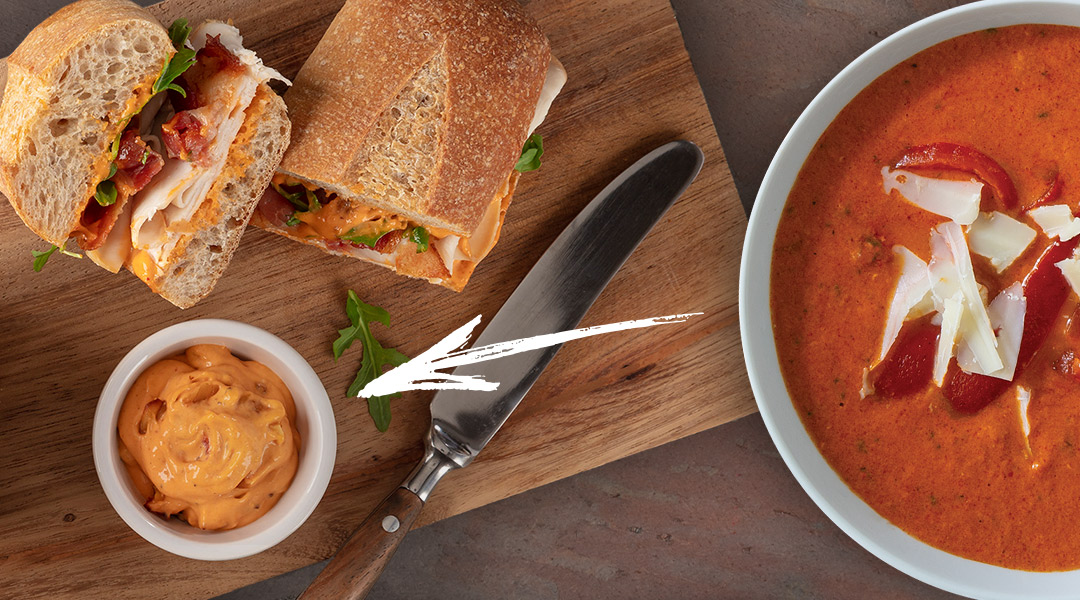 ROASTED RED PEPPER SMOKED GOUDA MAYO MADE WITH CAMPBELL'S® RESERVE ROASTED RED PEPPER & SMOKED GOUDA
